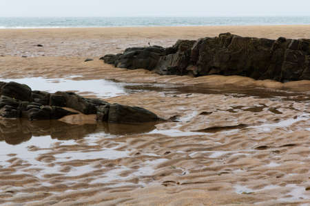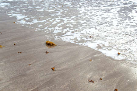 Scene as background, sea and sand of wet beach wet by the waves of the sea.