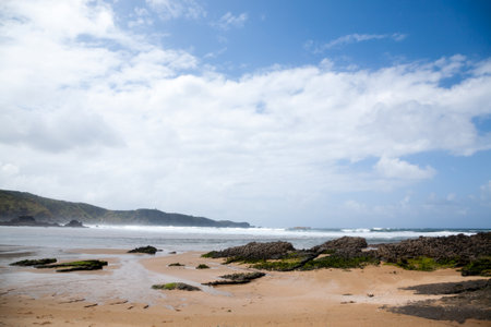 A beautiful shot of a coast washed by ocean waves under a cloudy sky