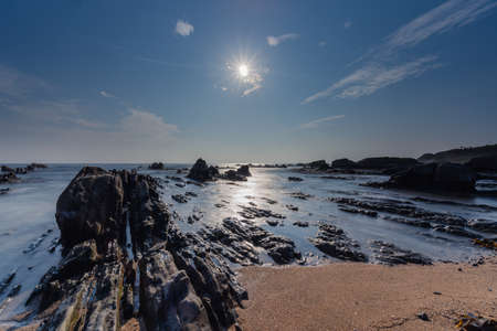 Scenic view of the beach at the North Sea side in Brora village in Scotland, UK