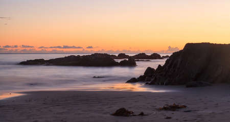 Sunset at Little Fistral Beach beneath the Towna Headland in Newquay, Cornwall