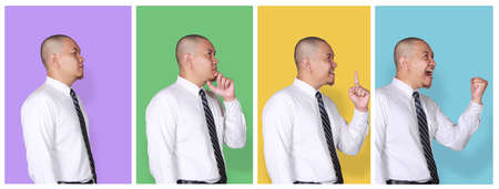 Set of male and female business portraits. Corporate employees of all ages and races showing various face expressions