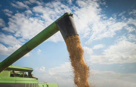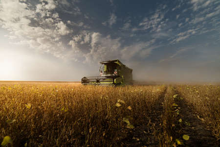 Mato Grosso, Brazil, March 02, 2008: Mass soybean harvesting at a farm in Campo Verde