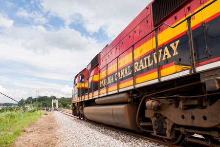 Panama - November 22, 2013: The Panama Canal Railway is a railway line that runs parallel to the Panama Canal, linking the Atlantic Ocean to the Pacific Ocean in Central America.