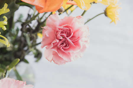 pink carnation flower in the garden, soft focus background.