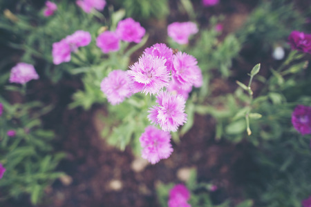 Pink carnation flower in the garden, soft focus, vintage tone