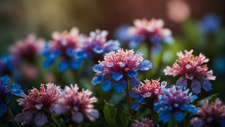 A stunning display of pink and white flowers showcases delicate petals in soft lighting against a blurred background. Ideal for spring themes and nature lovers.