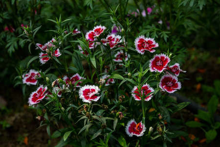 White and red Dianthus Chinensis or China Pink flowers. White cycle made the flowers more attractive.