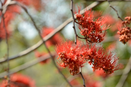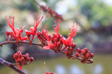 Beautiful of saraca asoca or ashoka flower. Red assoca flower.