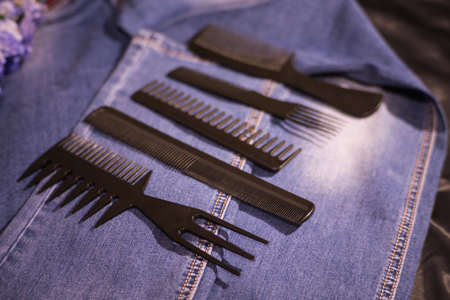 combs of different shapes and purposes, for hairdressers