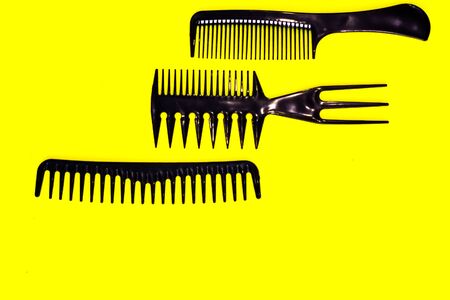 Two black combs on yellow background