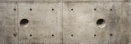 Gray concrete wall surface features a geometric pattern with small holes.