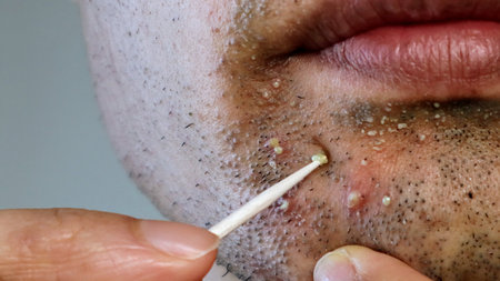 Man squeezing pus after laser hair removal