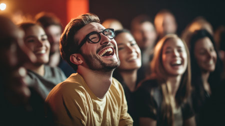 Spectators laughing watching a comedy show in a theater