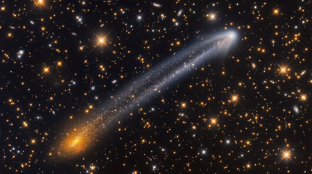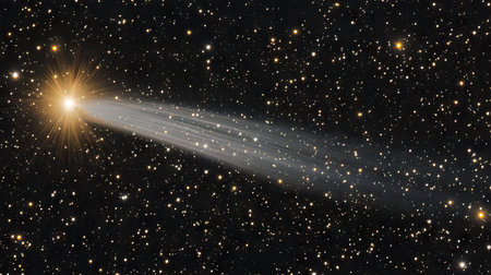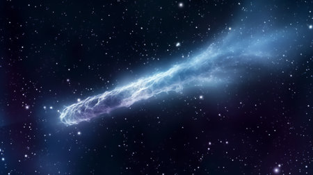 long tail of a comet shines brightly in deep space, piercing the starry sky generative ai