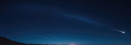 Illustration of two meteors streaking across the night sky, realistic, high resolution