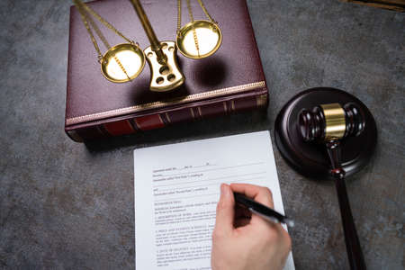 woman hand document and judge on desk