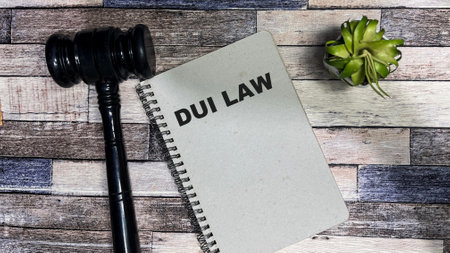 Concept of DUI LAW write on book isolated on Wooden Table.