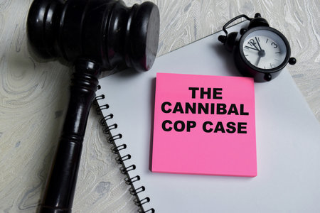 Concept of the cop case write on sticky notes isolated on Wooden Table. Representing criminal investigation, police misconduct and court justice