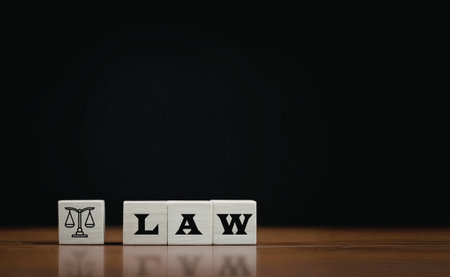 An image featuring wooden blocks spelling out the word 'LAW' with a symbol of scales of justice on the first block, representing the concept of law and justice.