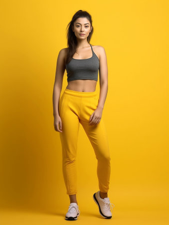 Beautiful sporty woman Full length of beautiful young woman in sports clothing holding hands on hip and smiling : Generative AI