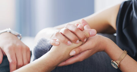 Being with you is the best comfort. Closeup shot of an unrecognisable couple holding hands while sitting together on a sofa at home.