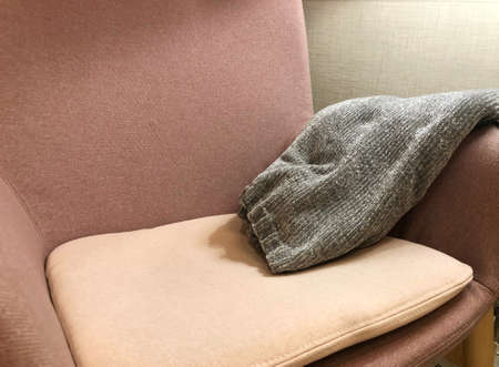 pink elegant armchair with gray plaid in the luxury apartments