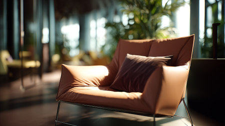 Sunlight illuminating leather armchair in a cozy living room