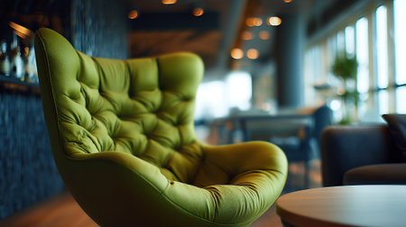 Elegant avocado green armchair in a stylish waiting room or office space.