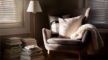 Cozy reading nook with light streaming through window on a quiet afternoon