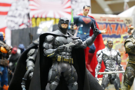 KUALA LUMPUR, MALAYSIA -MARCH 31, 2018: Fictional character from Batman movies by DC movies and comic. Batman action figure toys in various sizes display for the public.