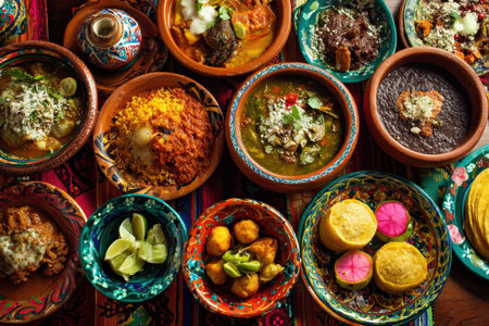 Experience vibrant and colorful traditional Mexican food dishes beautifully arranged on a festive table during a family gathering celebrating culture and heritage