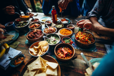 Fiesta Time: A Group of Friends Enjoying Delicious Mexican Cuisine --ar 3:2