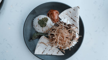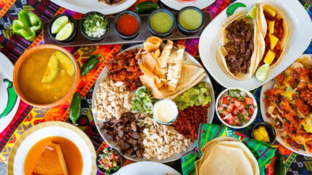 Traditional mexican food on table in a restaurant. Mexican cuisine.