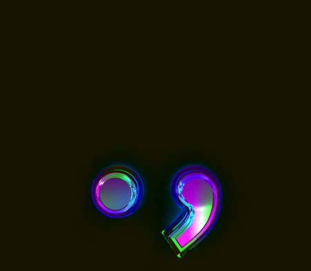 Colorful dichroic film font - period (full stop) and comma isolated on gray, 3D illustration of symbols