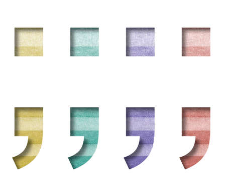 Punctuation marks dot and comma is cut out of white paper on a background of colored blinds, alphabet, decorative office font.