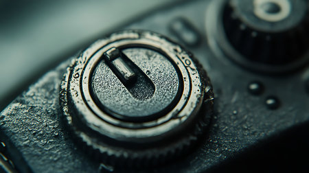 Macro of retro photo camera detail. Selective focus. Shallow depth of field.