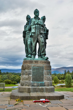 Spean Bridge / Scotland - May 31 2017: A memorial dedicated to the men of the British Commando Forces raised during World War II