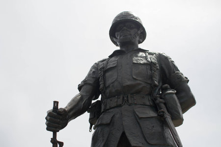 war memorial in the remembrance of brave soldiers at foggy day image is taken at batista loop darjeeling west bengal india.