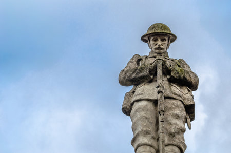 COTTENHAM, ENGLAND, UK - DECEMBER 30, 2013: Statue in the village of Cottenham, Cambridgeshire, England, UK, dedicated to the memory of the men of Cottenham who died in World War I and World War II