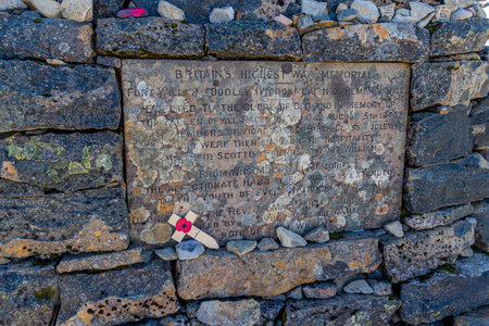 BEN NEVIS, SCOTLAND - SEPTEMBER 01 2021: War memorial on the summit of Ben Nevis - the UK's tallest peak