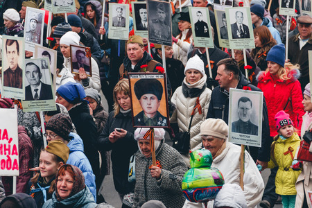 TOMSK, RUSSIA - MAY 9, 2016: Procession of people in Immortal Regiment on annual Victory Day, May, 9, 2016 in Tomsk, Russia
