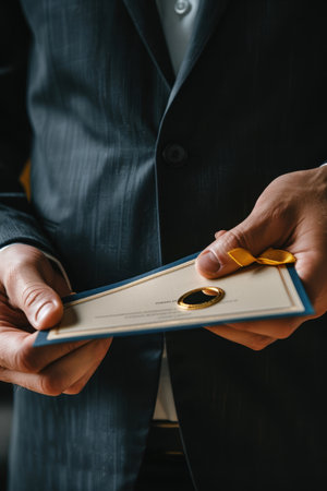 Man in Suit Holding a Folded Paper