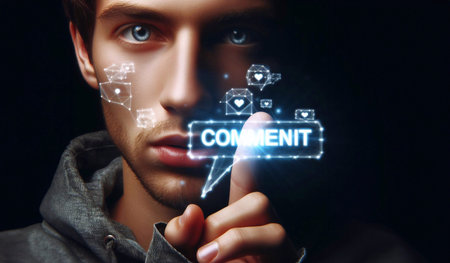 New york, USA - October 11, 2022: Add new comment in social media on screen macro close up view background