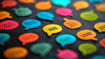 Comment symbols in a circle. Meeting and discussing matters, sharing opinions and feedback. Communication, collaboration, and public discussion. Media, forums, and social platforms.