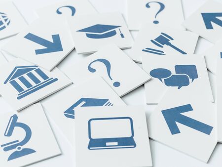 Business, finance and conceptual icons on shuffled cards: strategy and game concept