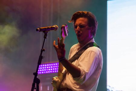 FARO, PORTUGAL: 5th SEPTEMBER, 2019 - Pop Rock band Bruno Pernadas, performs on Festival F, a big festival on the city of Faro, Portugal.