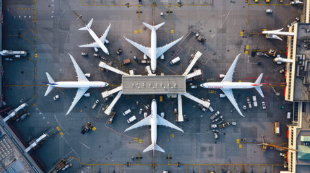 London, England February 25, 2019: Aerial Photograph of London Heathrow Airport Terminal 5 and British Airways Planes, England, United Kingdom, Europe