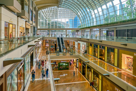 SINGAPORE- JUN 10, 2017: The Shoppes at Marina Bay Sands is one of Singapore's largest luxury shopping malls, with over 800,000 square feet of high-end retail shoppes