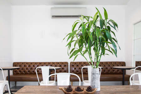 Interior designing,Setting the table for dining white room, the table is decorated with flower jar in coffee shop