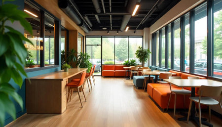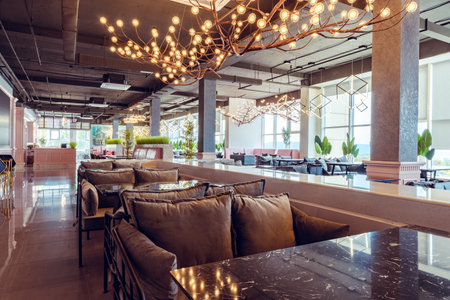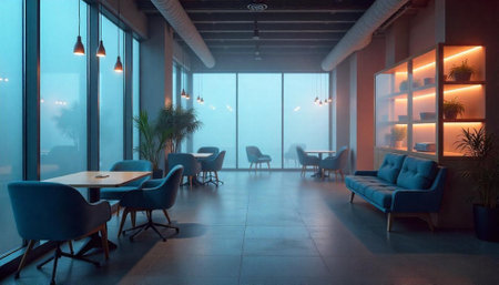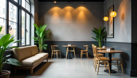 Inviting cafe interior featuring stylish furniture and ambient lighting
